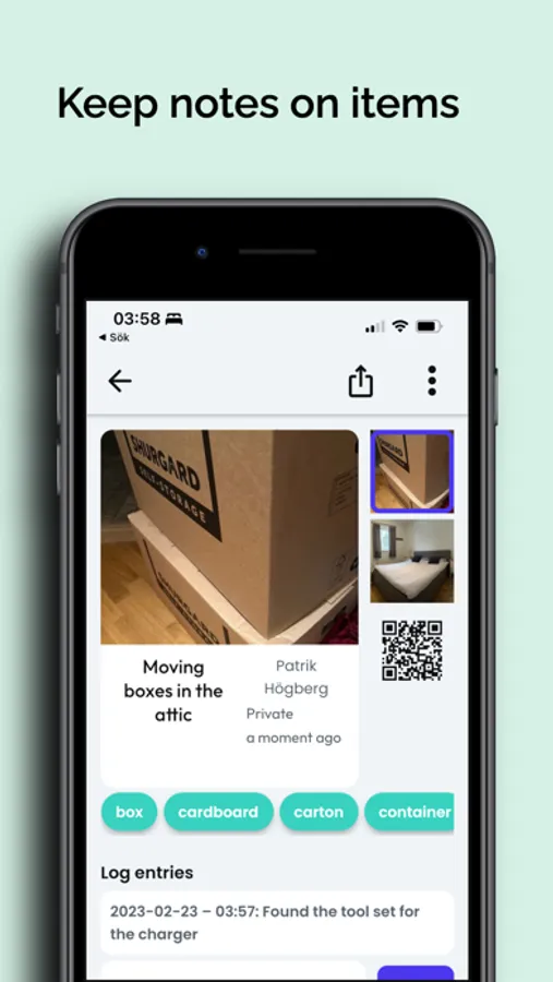 Each item in PachAI can be assigned a unique identification tag, whether it's a printed QR code or a sharable link. Our camera barcode scanner makes it quick and easy to find any previously tagged items. Plus, if you choose to make your items public, others can view the information about them, making it perfect for travel bags or organizing items in external storage facilities.