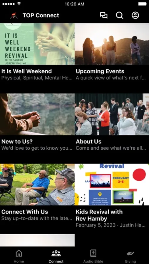 This app will help you stay connected with the day-to-day life of our church. With this app you can: watch or listen to past messages; stay up to date with push notifications; share your favorite messages via Twitter, Facebook, or email; and download messages for offline listening.