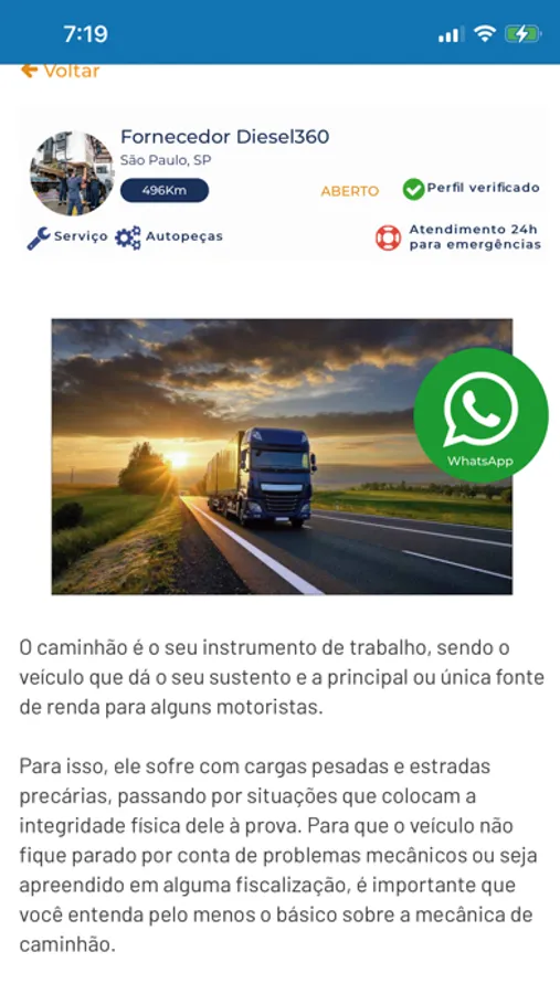 Aplicativo voltado a motoristas de caminhões, que permite localizar
