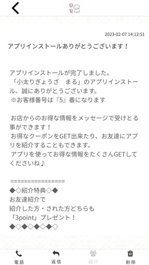 このアプリでは、小太り餃子の最新情報の受け取りや便利な機能を使う事ができます。