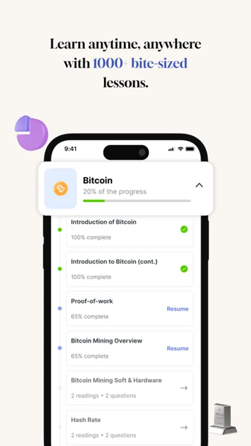 In this app, you'll learn about the history and purpose of Bitcoin, why it's becoming increasingly popular, and how to buy and store it. You'll also explore the exciting world of Ethereum and its many applications. Our courses cover topics like mining, smart contracts, and scaling, so you'll have a deep understanding of these complex technologies.