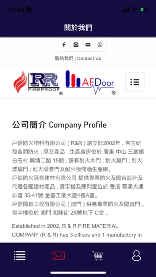 戶信防火物料有限公司 ( R&R ) 創立於2002年 , 自主研發各類防火 ; 隔音產品 . 生產廠房位於 廣東 中山 三鄉鎮 白石村 興塘二路 15號 , 設有耐火木門 ; 耐火鐵門 ; 耐火玻璃門 ; 耐火隔音門及耐火板間牆生產線。