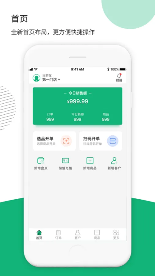 业务管理:线上小程序、销售开单、订单管理、支付管理、商品管理、多门店店铺管理、收入支出统计。