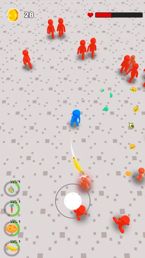 Food Fight Survivors is a survival game with roguelike elements. Defeat waves of enemies by throwing fruits, veggies, and other food at them!