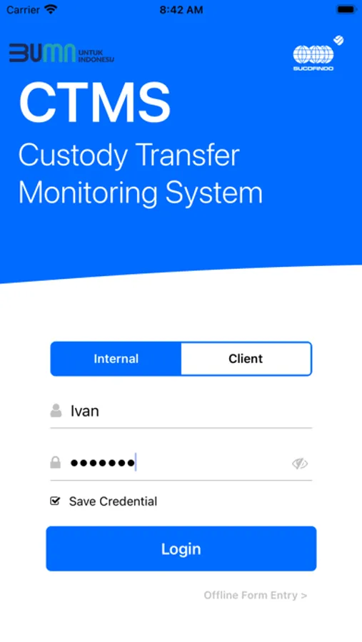 Upstream Oil and Gas Custody Transfer monitoring system in real time using mobile apps. The process of handing over oil and gas products or Custody Transfer is an activity of buying and selling transactions in the form of crude oil, petroproduct, petrochemical and gas by moving from one place to another with one calculation reference point or commonly called the Custody Transfer Measurement System (CTMS) which in the form of flow meters, automatic tank gauging and manual tank gauging. The application was formed by PT Sucofindo's HMPM IT team.