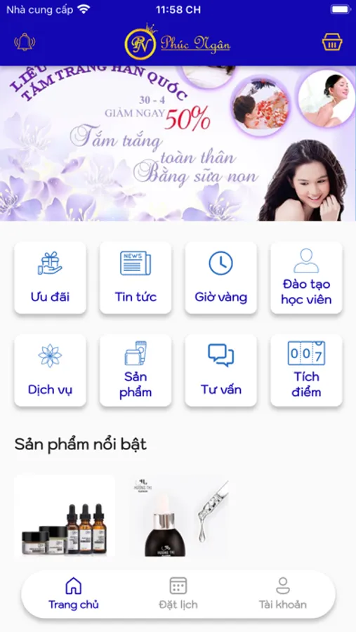 Ứng dụng Spa Phúc Ngân cung cấp các tính năng: