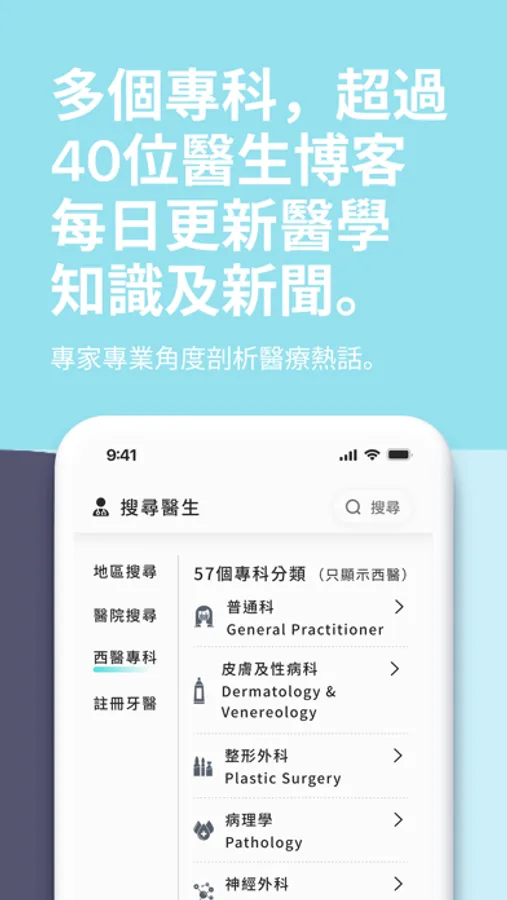 文章分門別類清晰排列,按不同身體部位、疾病、科目及關鍵字輕鬆搜索。