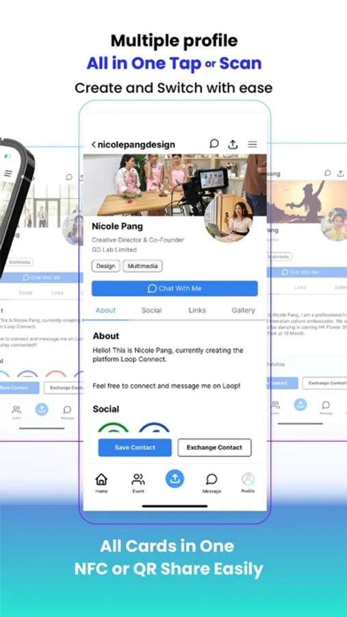 Loop, Professionally connected. One person, one tap or scan, all looping into one community at the same time. A powerhouse where all great ideas and conversations happen in the same place. We are devoted to empower all types of connections in life.