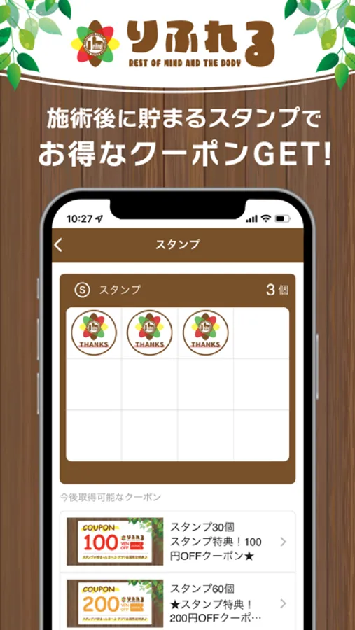 ご来店スタンプをためるとお得なクーポンが発行されます(ご利用条件がある場合がございます)