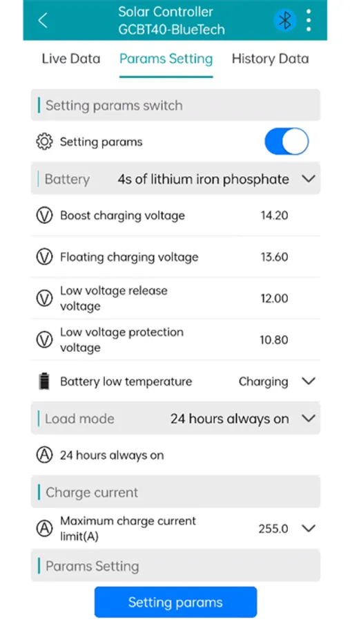 Eta Solar is used for ETA series solar controller series products to read the working status of the controller, set the working parameters of the controller, view historical records, and realize functions such as remote maintenance assistance.