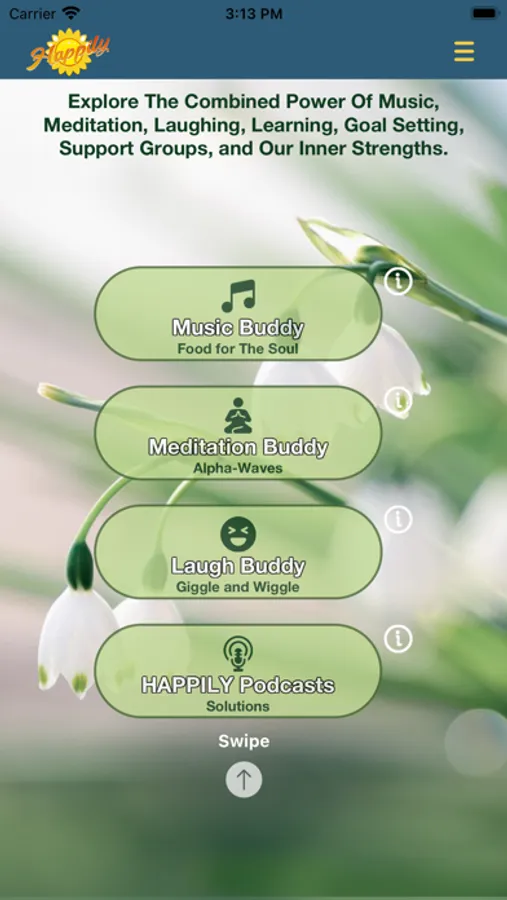 There is also a Laugh Buddy, for your laughing exercise. You can choose a laughing buddy and laugh with your buddy, loudly for just one minute daily. Laughing generates happiness hormones.