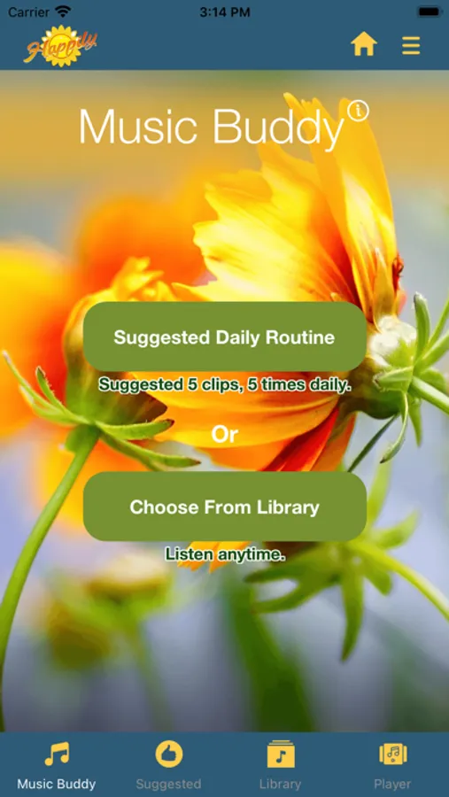The Music Buddy has specially created, short, music clips to listen to, 5 times a day. They invoke several positive emotions of being calm, relaxed, confident, positive, loving, compassionate, cheerful, energetic, joyful and happy.