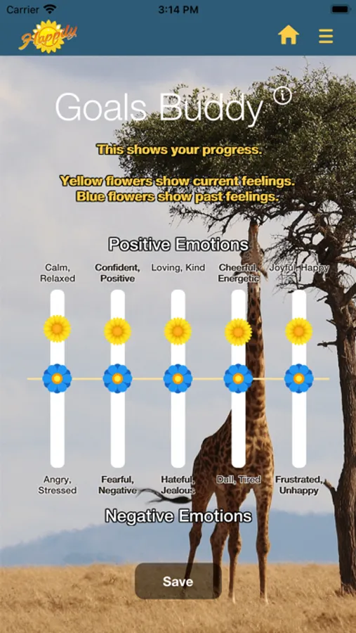 The Goals Buddy helps you track your progress. It provides evidence of success in your daily happiness practice.