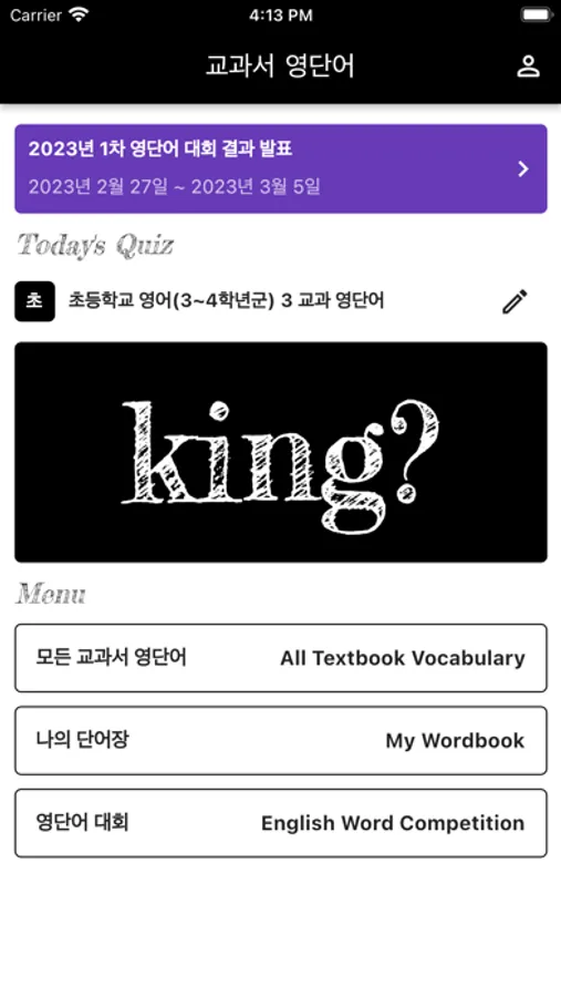 교과서 영단어를 얼마나 알고 있는지 확인해보세요.