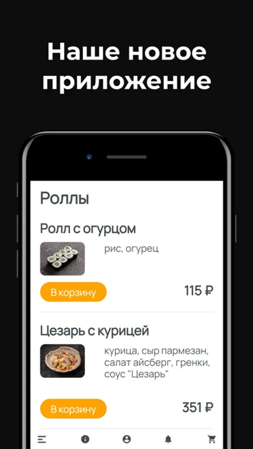 В приложении Вы можете заказать свои любимые блюда (роллы, лапша, пиццы, бургеры, грили, салаты, напитки, десерты и другую еду).