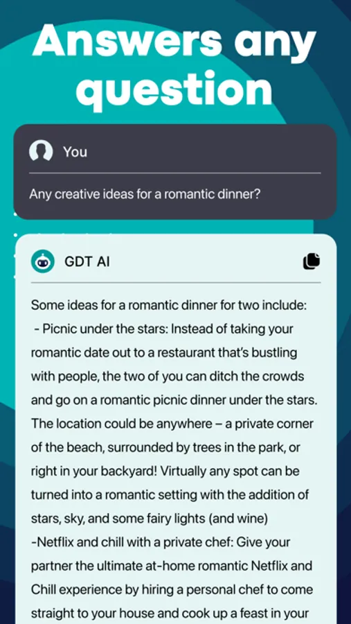 Download now to have your very own perfect AI assistant who can help answer all your questions quickly, be content creator for you.