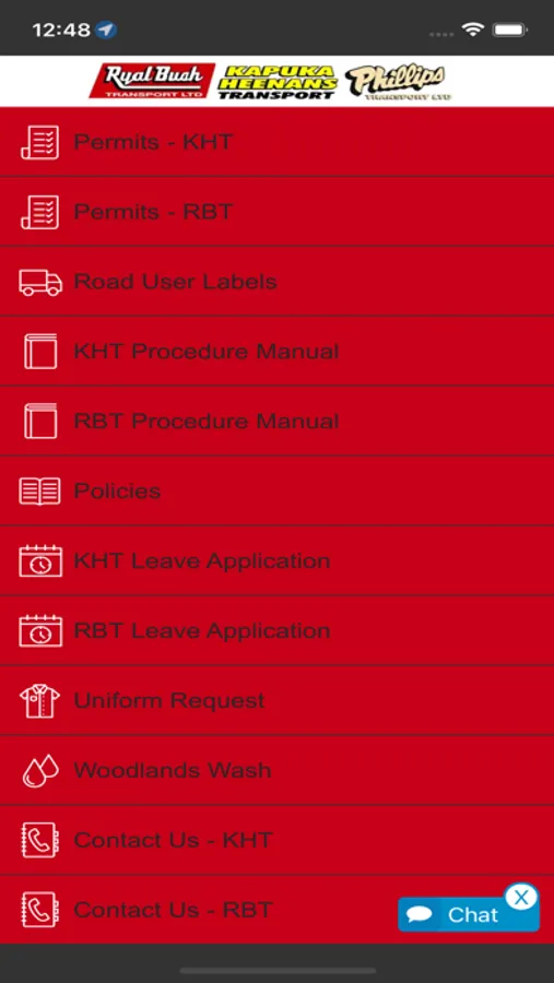 Rural Transport App for Ryal Bush Transport, Kapuka Heenans Transport and Phillips Transport. This is a private application for drivers to use. Information included on the app is Permits, Policies, Contact Information, Leave Applications and Uniform Requests.