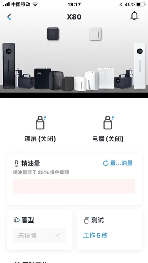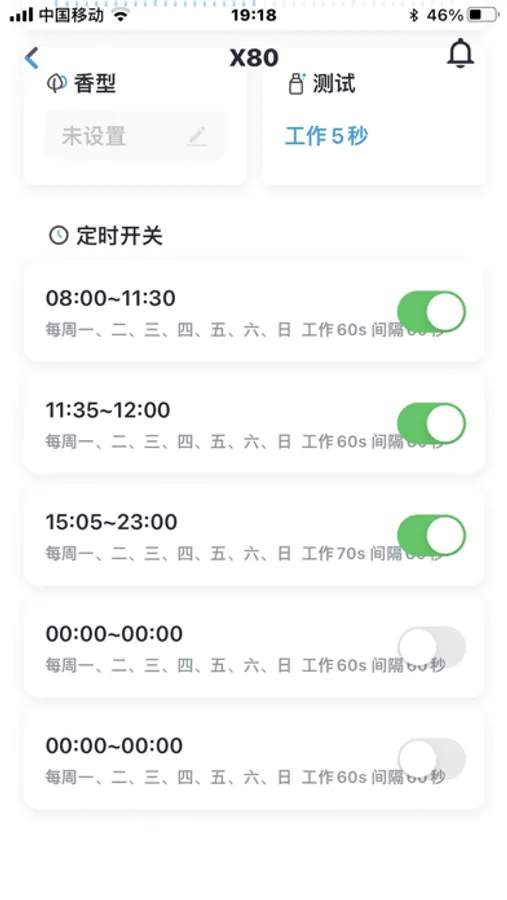 是通过手机APP连接蓝牙后,通过手机蓝牙给香氛机终端APP简介:设备进行时间任务等设置的一款功能控制软件。有效的解决无需设备终端进行按键操作的不便之处。