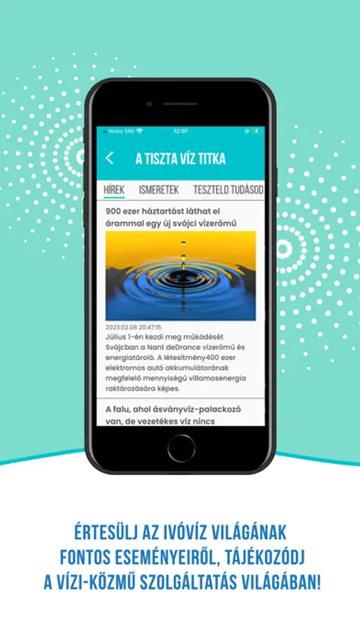 Alkalmazásunk hasznos és érdekes információkat nyújt a minőségi élethez szükséges tiszta ivóvíz témakörében Hírek, Ismeretek és Kérdőívek segítségével.
