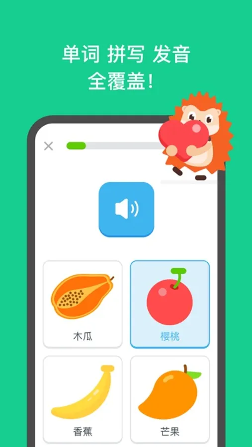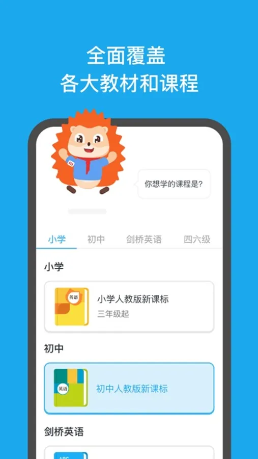 刺猬英语app,帮助小学到高中的孩子更好地学习和培优课内外英语知识。