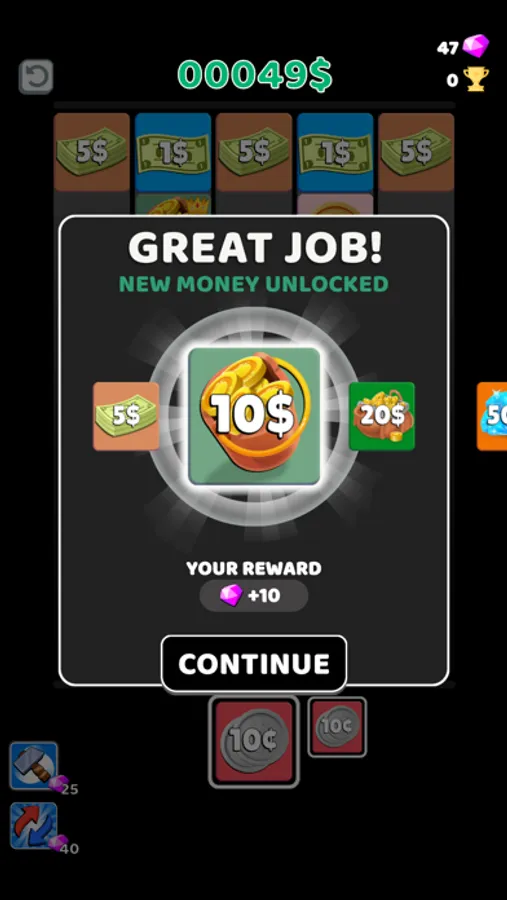 The objective is to drag and shoot the money blocks to progressively unlock new blocks. The challenge expands as you move on. You can go as far as infinity!