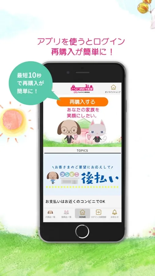 一度フードを処方いただいたら、ご自宅やお出かけ先でもアプリから簡単再購入!受付で愛犬・愛猫を待たせる心配もありません。