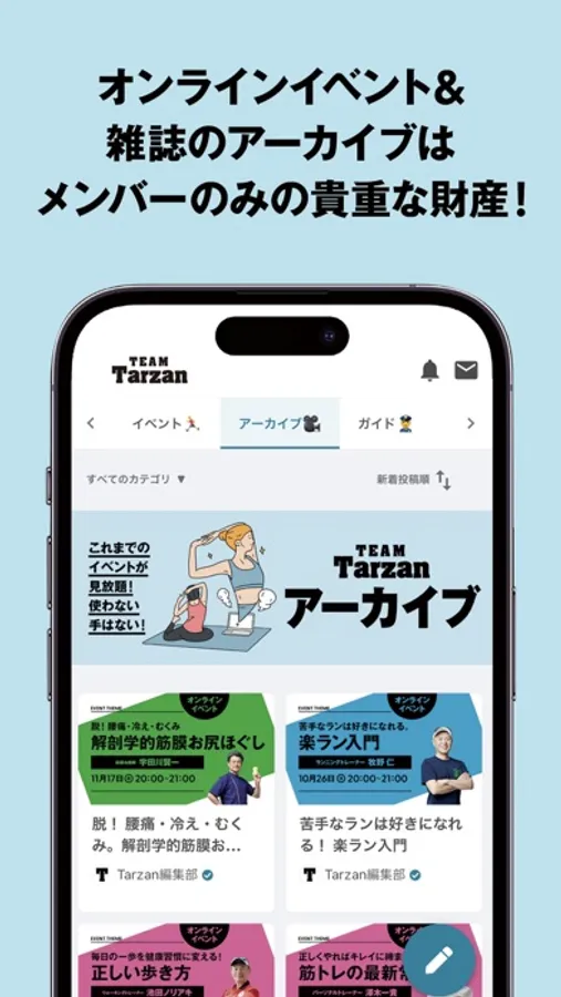 雑誌に載ったトレーナーや研究者が丁寧に説明してくれるイベント参加が可能に。アーカイブ視聴もできて、振り返りにも活用できます。