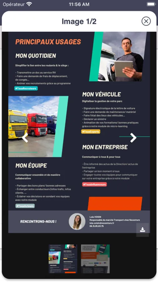 Véritable bolide, MonAppTransport permet d’embarquer de de digitaliser des processus très concrets : demande de maintenance, état du parc, demandes RH, signature des lettres de voiture, etc ; mais aussi de renforcer le collectif à travers le partage entre conducteurs, et des animations clés en mains proposées par Nexenture.