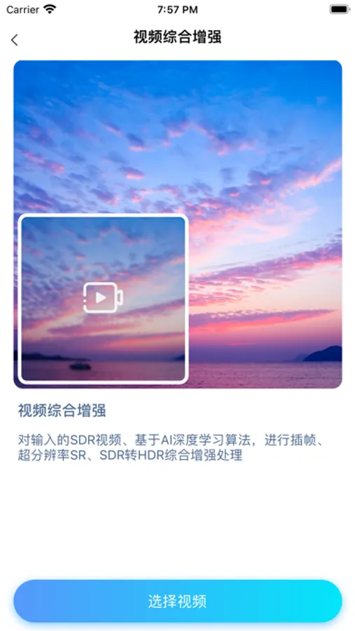 视频综合增强:视频综合增强,可以对输入的SDR视频、基于AI深度学习算法,进行插帧、超分辨率SR、SDR转HDR综合增强处理。