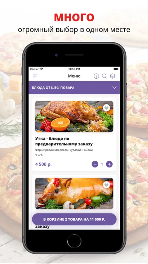 посмотреть меню и совершить онлайн-заказ,