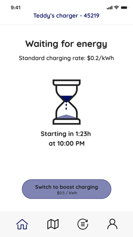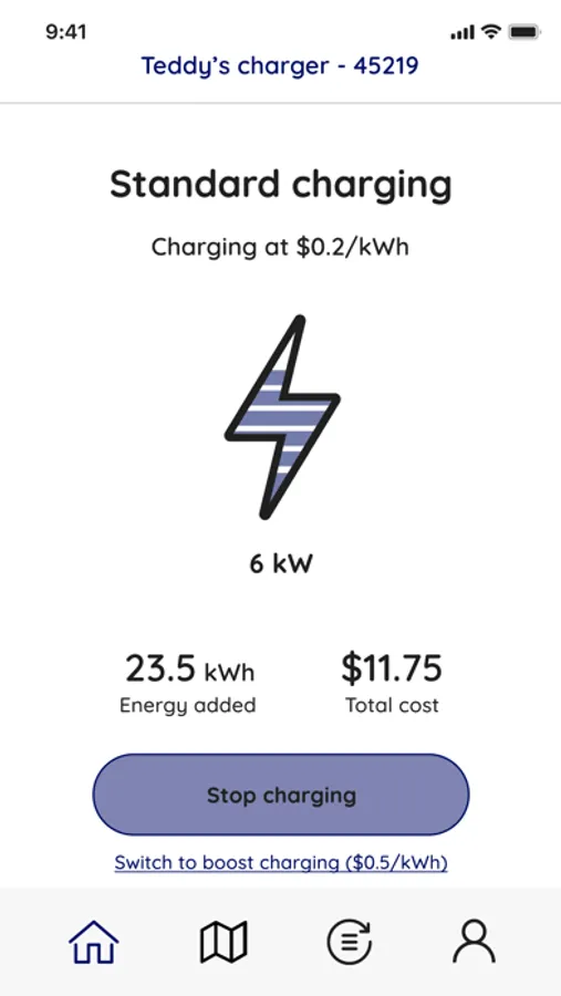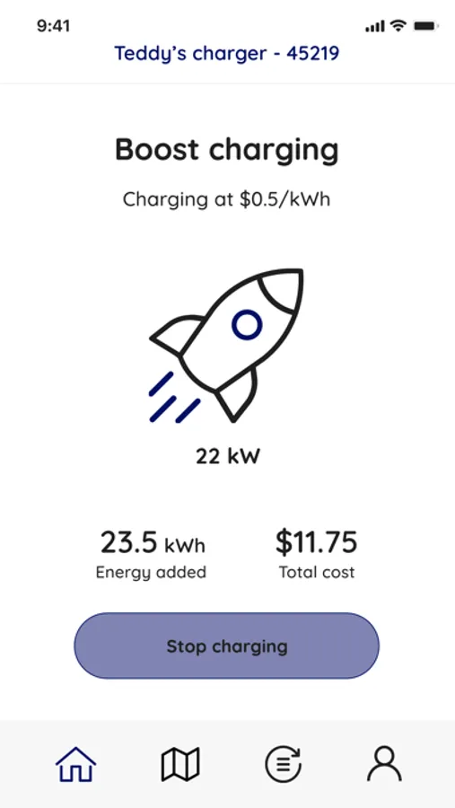 · A real-time charge rate (kW) and energy (kWh) display during this charging session.