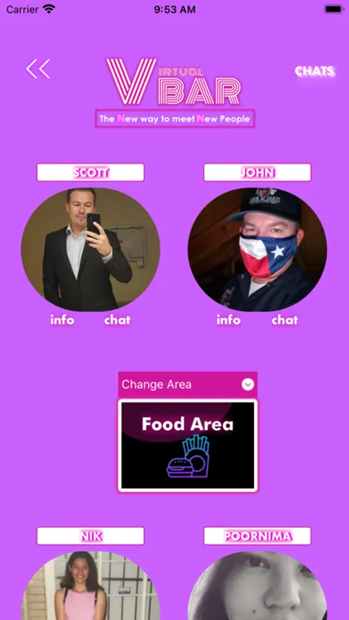 Introducing Virtual Bar, the ultimate mobile app for meeting new people in real time, eliminating the fear of face-to-face rejection while enjoying your favorite bar, club, or local social spot. Browse profiles of users who you can see in real time. Users who share your interests, strike up effortless conversations, and make meaningful connections. With Virtual Bar, you can enjoy a rejection-free environment and mingle without the anxiety. Whether you're at a bustling bar or a cozy local spot, Virtual Bar leverages your location to connect you with like-minded individuals that you can see in real-time. #NoCatfishinghere!. Chat privately, get to know someone, and expand your social horizons. Download Virtual Bar now and embrace socializing with confidence. It's time for a "New way to meet New people"