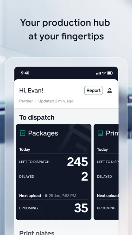 Production status updates anytime, anywhere: Keep tabs on the status of production files and dispatch queues.