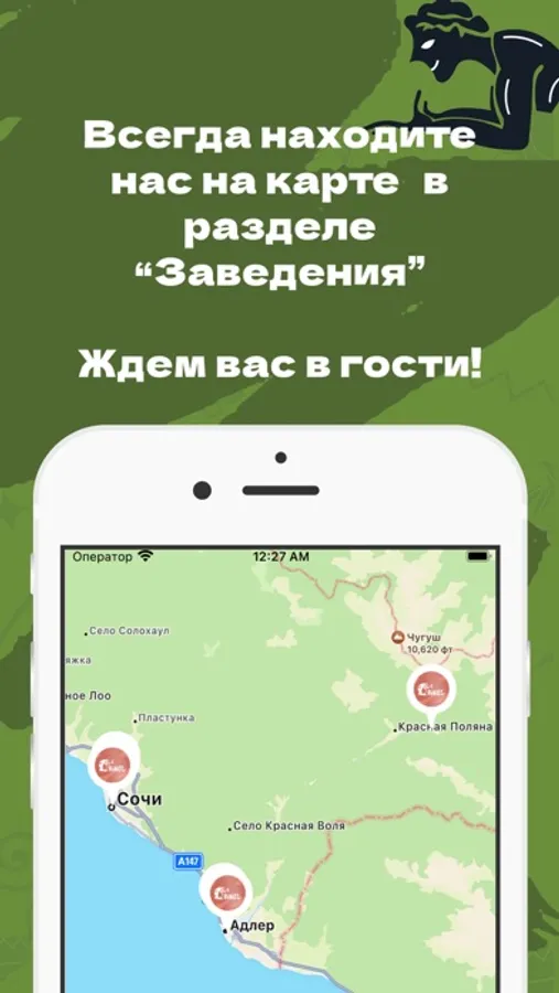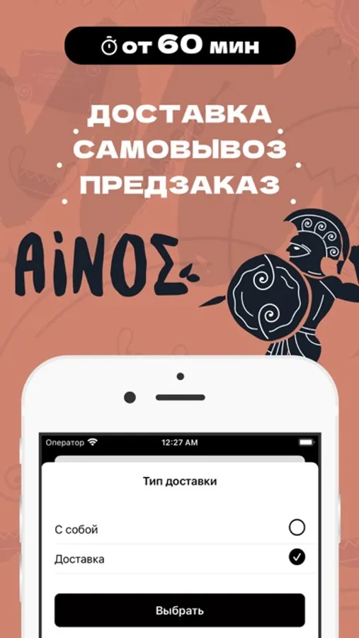 Как сделать заказ в приложении “Энос”: выберите понравившиеся позиции из меню, добавьте их в корзину и перейдите на экран оформления заказа (по нажатию на иконку корзины).