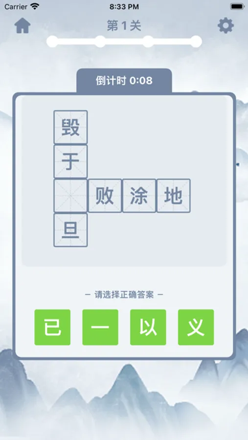 每个关卡有不同的难度,可以在游戏中学习并了解更多的成语。