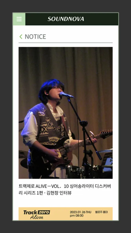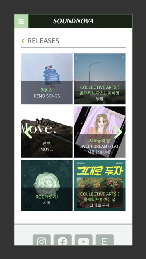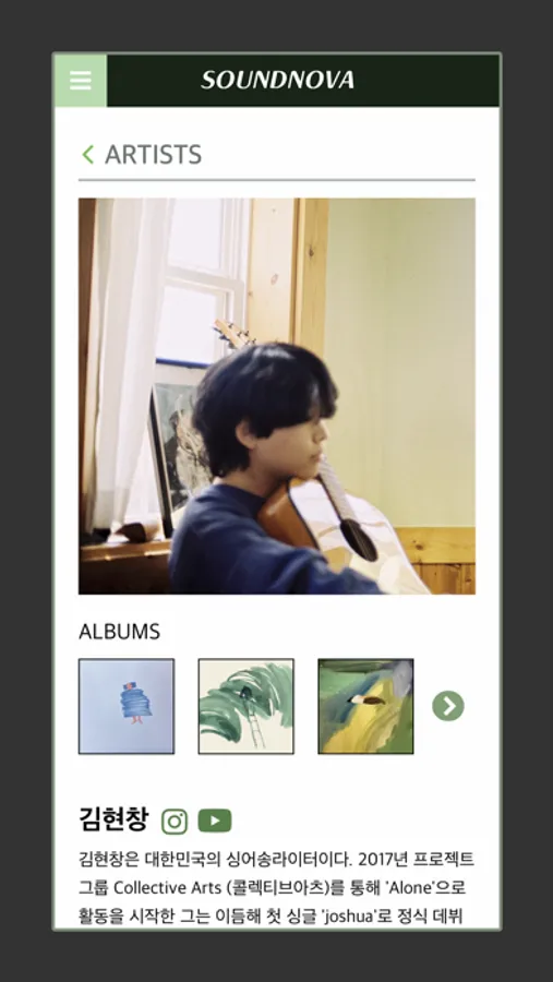 - 사운드노바 소속 아티스트의 프로필을 한 눈에 확인할 수 있어요.