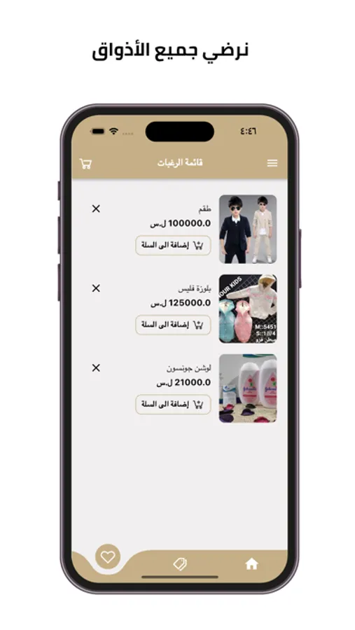 أضف أي عنصر إلى قائمة أمنياتك واطلبه في أي وقت.