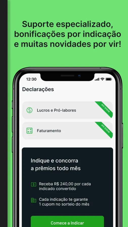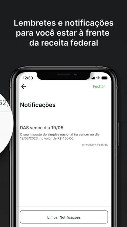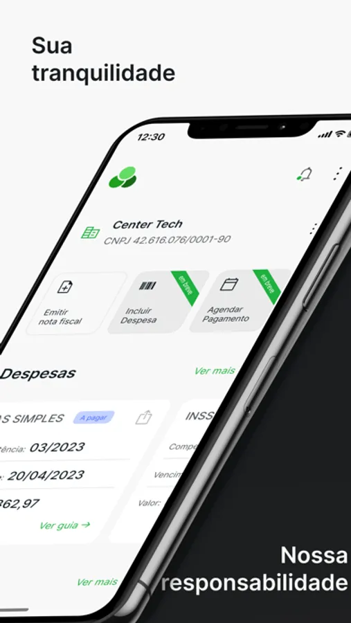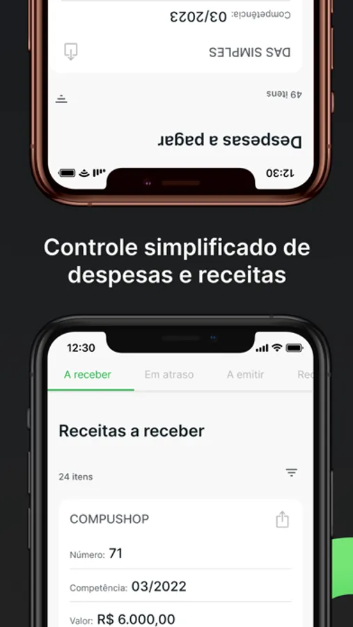 Controle suas receitas, impostos, pró labores e despesas pelo app: tenha o financeiro e a contabilidade da sua PJ controlados na palma da mão.