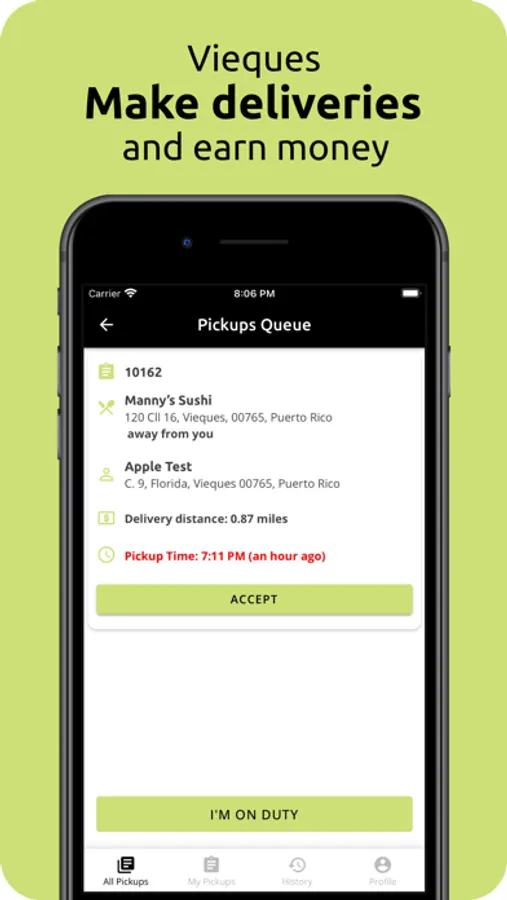 Use your car, scooter, or golf cart and be a VQS delivery driver whenever you want, for an hour, a weekend or for the whole week, and get paid with the click of a button after each delivery.