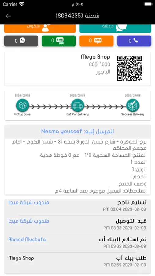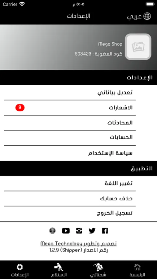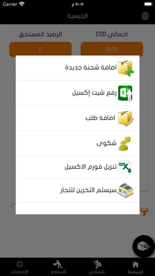 تطبيق الراسلين لتتبع الشحنات و الحسابات