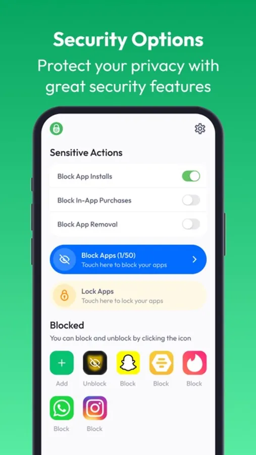 App Locker can lock & limit Social Media apps, Messaging apps, Contacts, Settings, and any app you want.