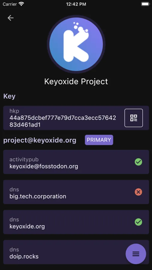 When you visit someone’s Keyoxide profile and see a green tick next to an account on some website, it was proven beyond doubt that the same person who set up this profile also holds that account.