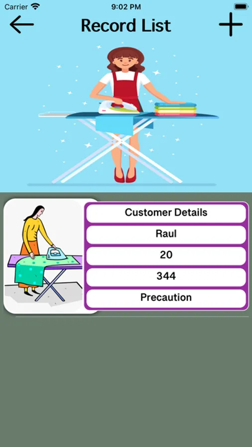 Once the details are added, user can view the list of all the clothes they have pressed belonging to different categories.