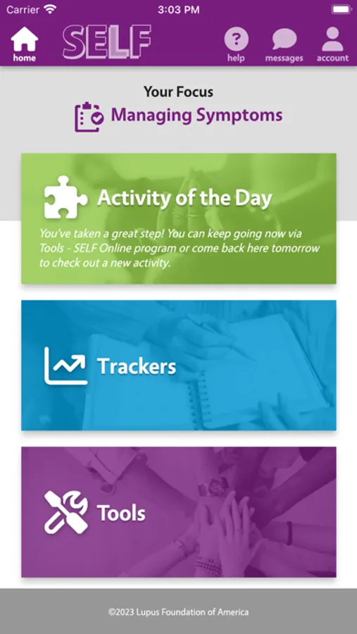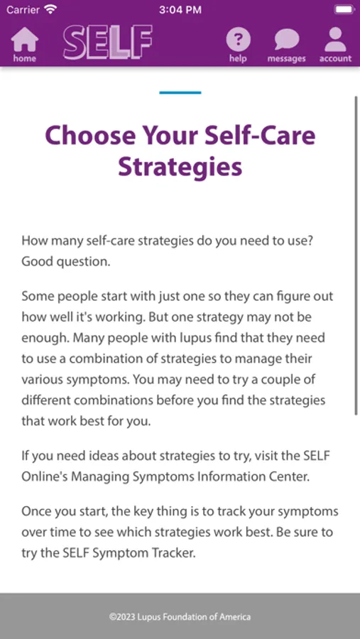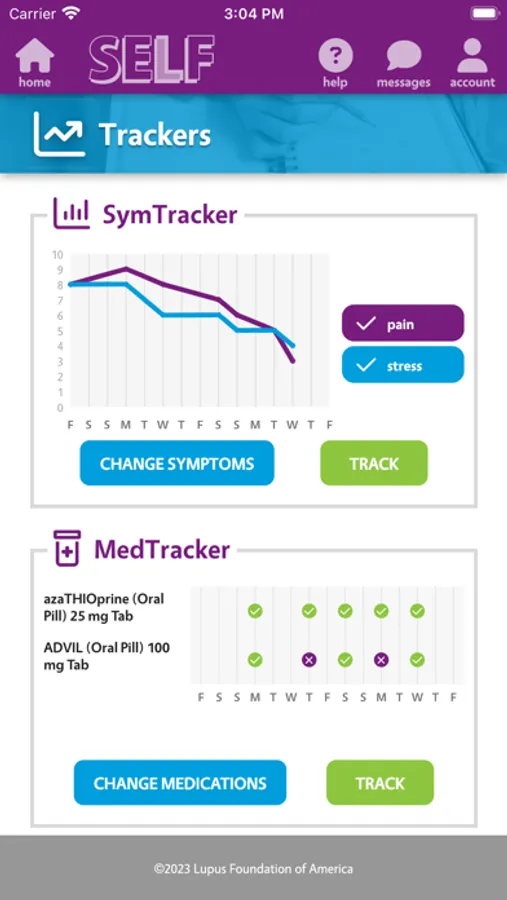 SELF is a free app to help people with lupus live their best lives. Rather than being controlled by lupus, you can feel in control. SELF is customized to help you better manage your lupus symptoms, stress, and medication --and work with your health care team.
