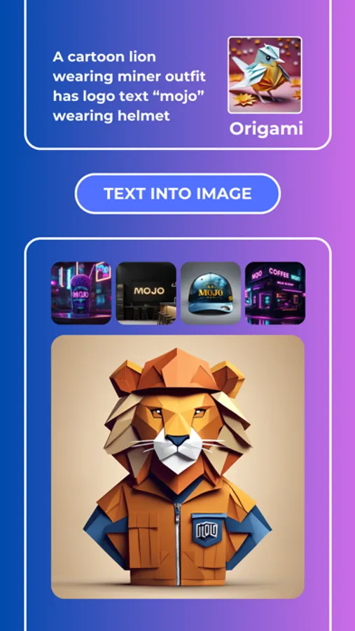 Whether it's fantasy, movie characters, portrait, landscape, anime, photographics, book covers, logo or architecture, Mojo AI cangenerate it all for you. Simply ask and watch as your ideas generate into stunning visual creations.