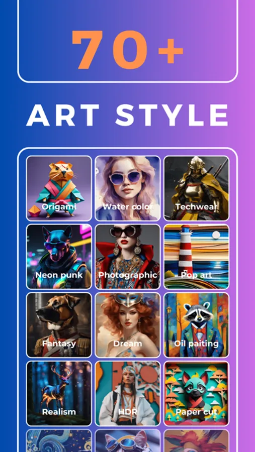 Create your very own AI photo effortlessly with our cutting-edge AI technology. Explore a wide range of art style and image ratio to generate an photo that truly represents your unique style.