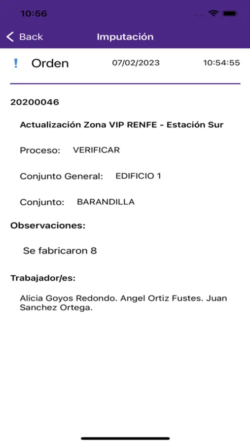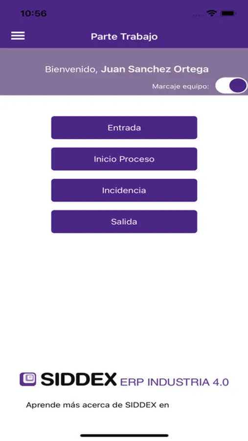 Permite la imputación de tiempos de operarios (entrada, inicio proceso, incidencia, salida) en tiempo real a SIDDEX. Dispone de Hco. para consultar los partes realizados durante todo el período desde que se usa la aplicación