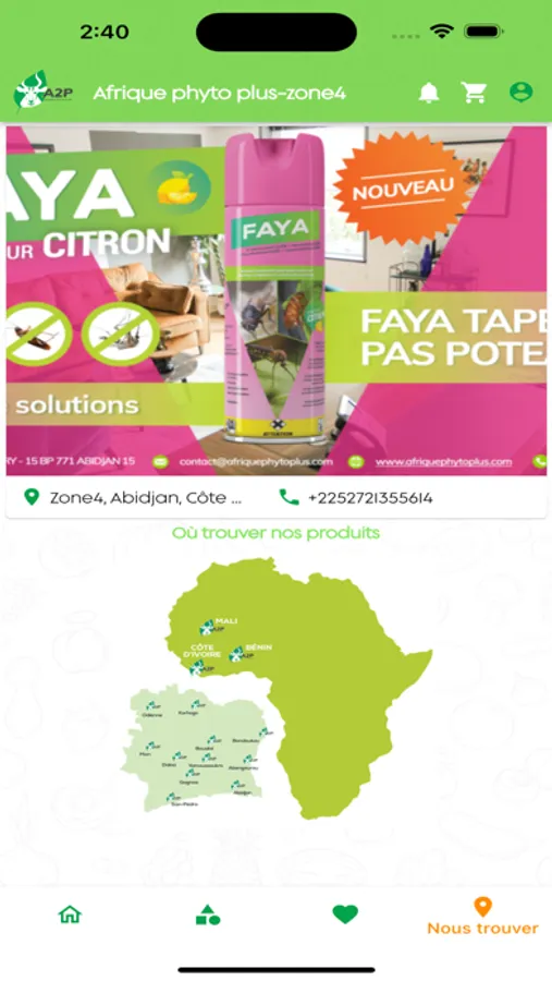 Afrique Phyto Plus (A2P) a pour ambition d'améliorer significativement les termes de la relation client et apporter une touche d'innovation dans son secteur d'activité. Nous espérons que vous essaierez cette application disponible en libre téléchargement.
