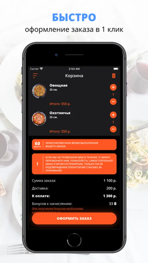 Скачивайте наше приложение, оформляйте заказ и наслаждайтесь любимой едой, где бы Вы ни были! Приятного аппетита!