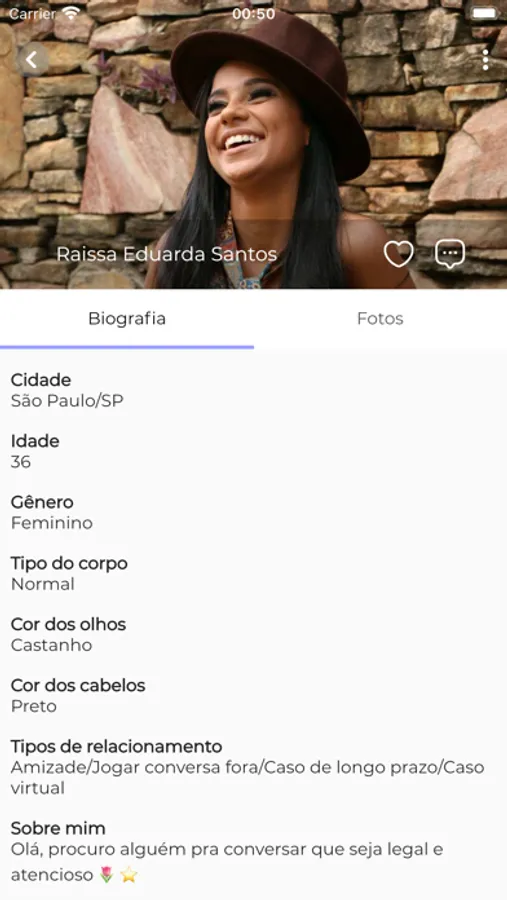 O aplicativo apresentará sugestões de pessoas que podem ser compatíveis com você, baseadas em seu perfil e preferências. Se você encontrar alguém que lhe interesse, pode enviar uma mensagem e iniciar uma conversa.